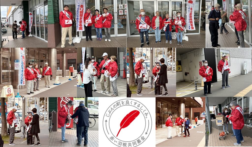 10月1日、赤い羽根共同募金の運動期間がスタートしました(2026年3月31日まで)。栄東地区では、初日、ホクレンショップ北49条店前とイオン栄町店前で街頭募金がはじまり、「赤い羽根共同募金にご協力をお願いします~」という声が響いていました。
