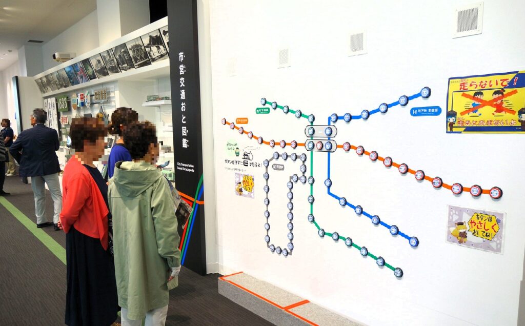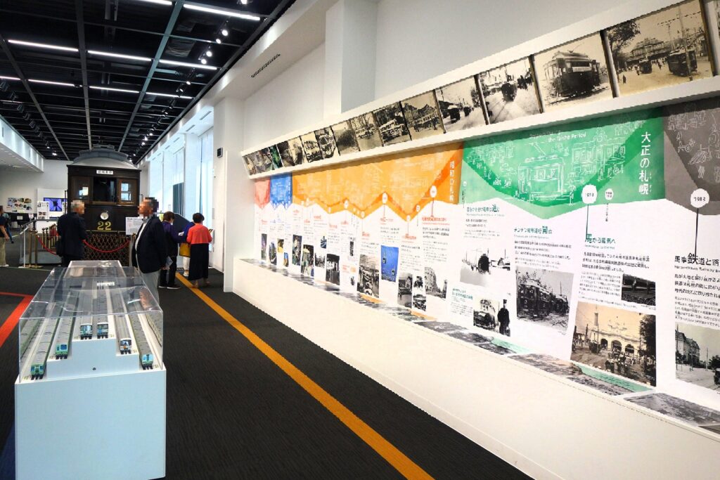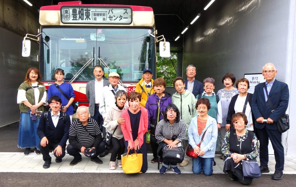 札幌市交通資料館では、市営交通の歴史を学んだりや懐かしい地下鉄、路面電車、バスの旧車体などを見学しました。(冒頭集合写真は、交通資料館に展示しているバスの前で・・・偶然にも札苗地区を走る路線のバスが展示されていました。)
