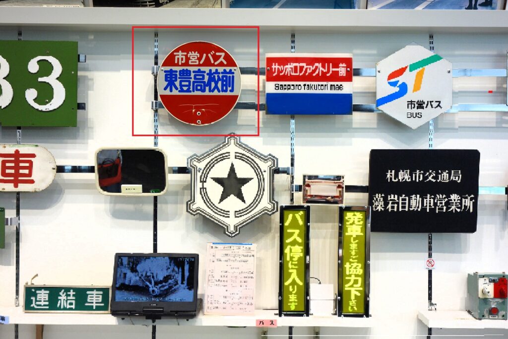 札幌市交通資料館視察(札苗地区の東豊高校前バス停が掲示)