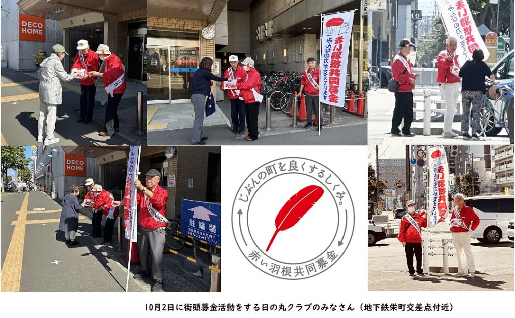 10月2日、老人クラブの日の丸クラブのみなさん5名が、地下鉄栄町交差点付近で赤い羽根共同募金の街頭募金を実施しました。