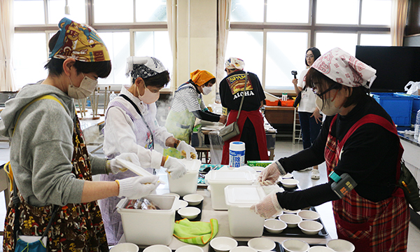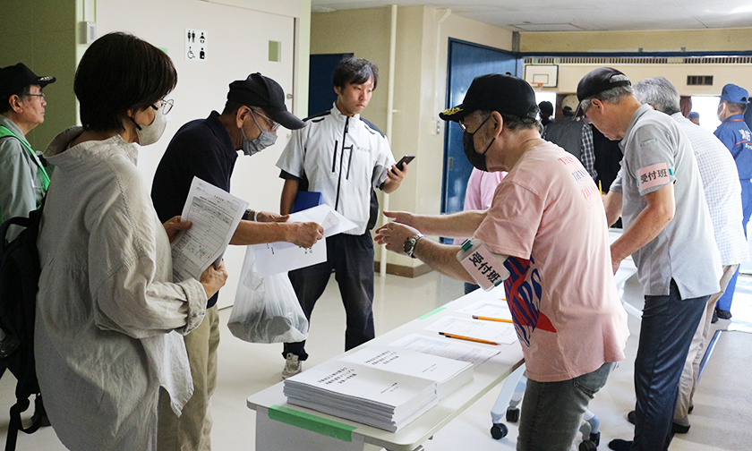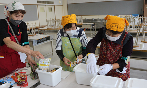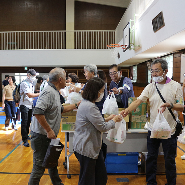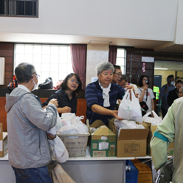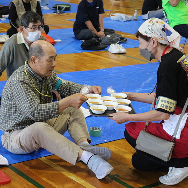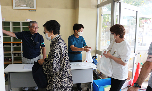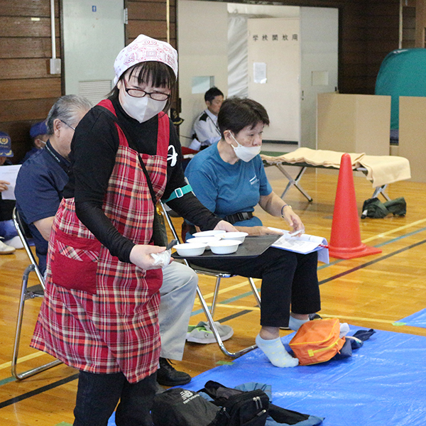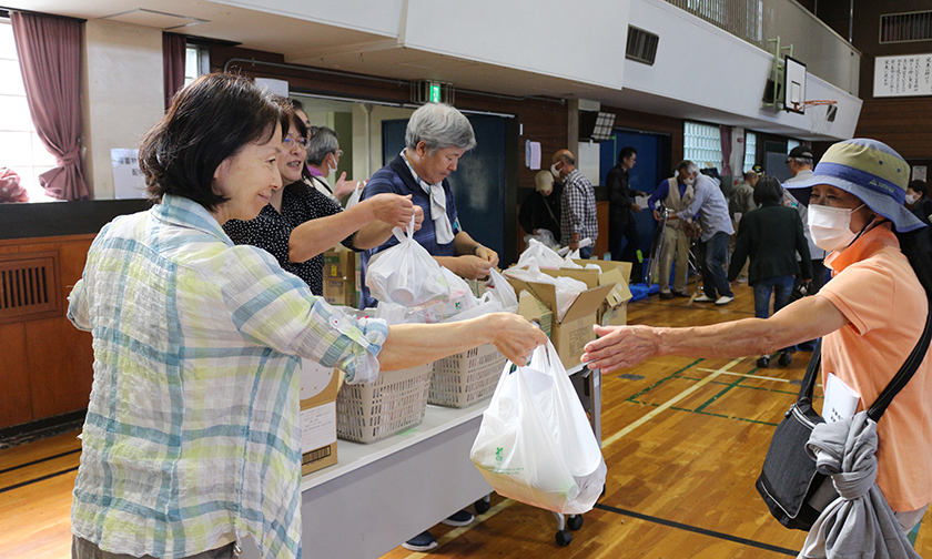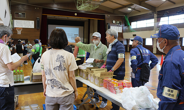最後は、備蓄物資班が仕分けした、配給の非常食を受け取り家路につきました。災害はいつ起こるかわかりません。こうした地道な体験が、万が一の災害時、迅速に地域住民が自ら自分たちの命を守るという行動につながっていくことでしょう。