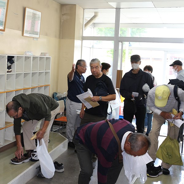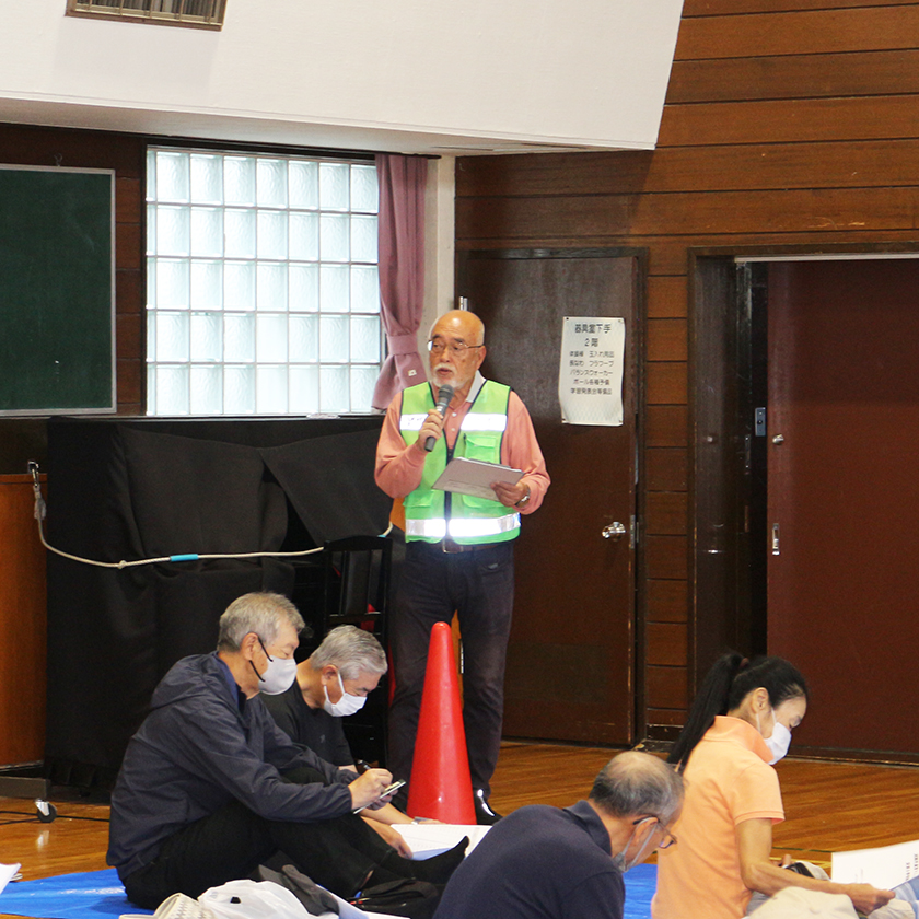 10月5日、水害を意識した住民主体の避難所運営訓練を栄東小学校で開催しました。これは、北海道胆振東部地震の教訓を生かし、住民自らが避難所を設置し、避難者を受け入れるというシミュレーション訓練です。今回は、連合町内会の第4分区の町内会と連町役員、消防団の40名が設置者となり、栄東小学校に避難所を設営し、第1・2・3分区の町内会会員が避難者となって訓練を行いました。