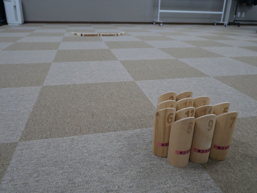 また、今回は会場で「モルック」を体験できるスペースを設けました。「モルック」はフィンランド発祥の木製の棒(モルック)と木製のピン(スキットル)を使ったゲームで、老若男女問わずどなたでも楽しめます。
