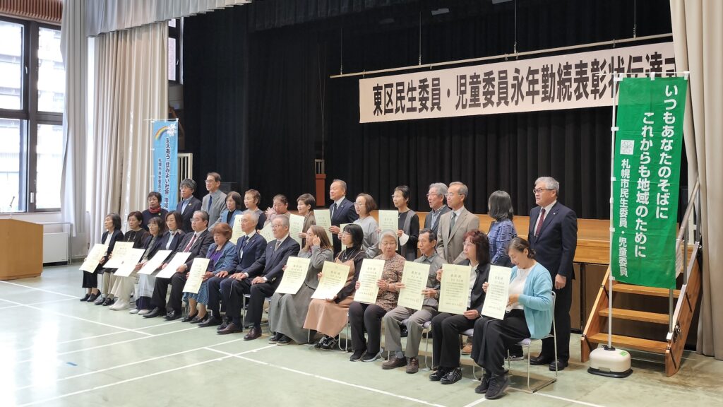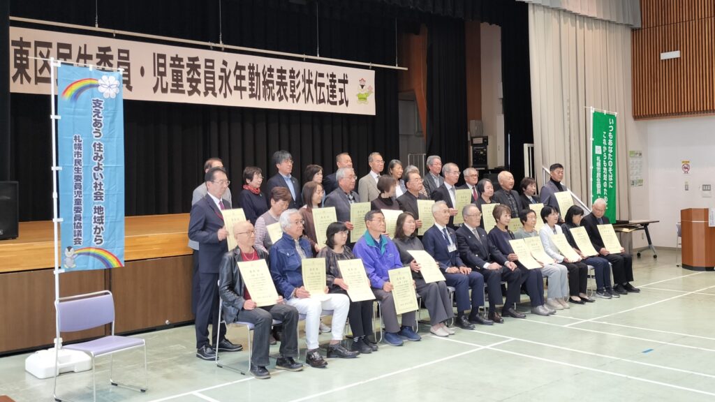 今年は、9月に第94回全国民生委員児童委員大会が札幌で開催されたことにより、例年表彰式が行われる札幌市民生委員児童委員大会が開催されず、東区が独自に表彰状伝達式を企画開催したものです。