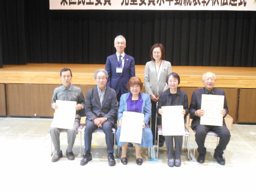 私たちの伏古本町地区からも、5名の方が栄えある表彰の対象となられ、森尾さん(35年)、井土さん(20年)、伊藤さん(5年)、佐藤さん(5年)の4名が出席し感謝状と記念品を受け取られました(菱沼さん(35年)は都合により欠席)。