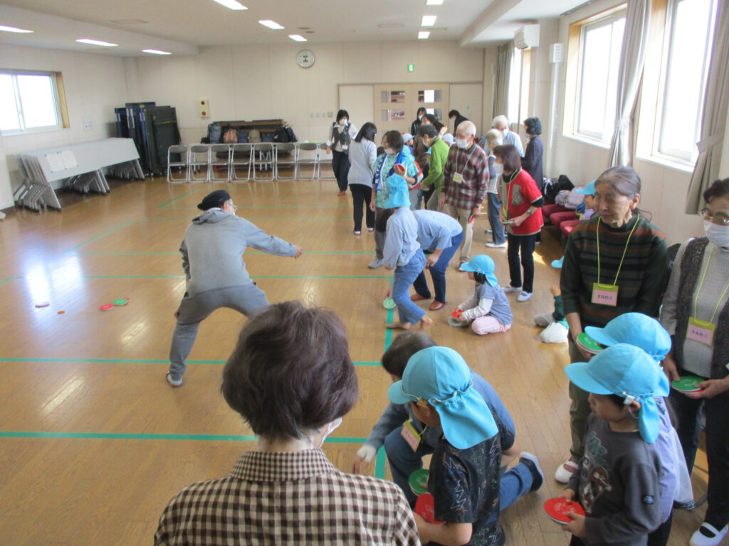 令和7年10月15日(水曜日)に開催したスマイル健康教室は、認定こども園おかだまのもりの園児といっしょに楽しむ多世代カーリンコンです。
