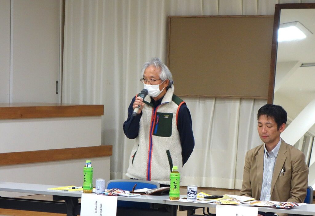 挨拶する札苗連合町内会岩谷会長