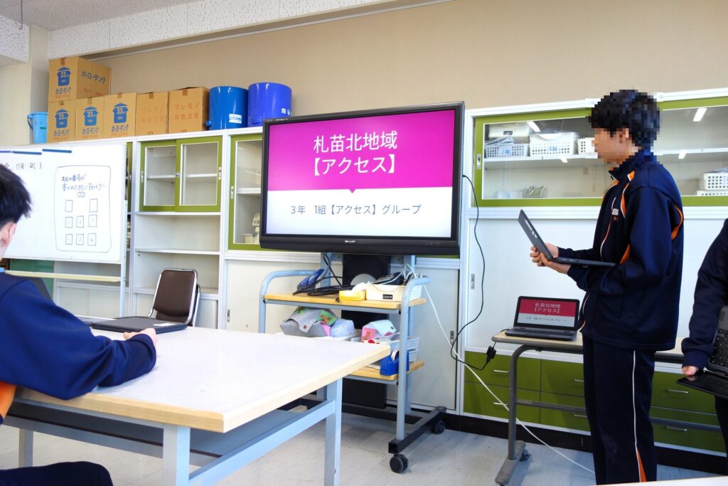 札苗北中学校では、中学3年生の家庭科の授業の一環として、自分たちの住んでいる地域について探求することを行っています。