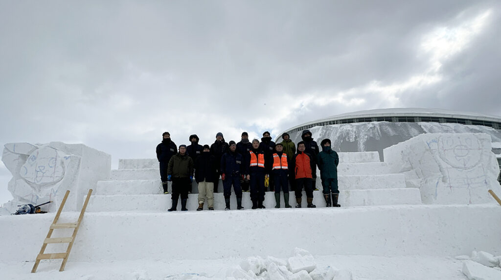 2月2日、3日は、中雪像の恒例ピカチュウ、アンパンマンの制作を実施します。3日は、栄東小学校2年生の雪だるまづくりを行い、2月4日からの雪まつり本番に臨みます。今年も、つどーむ会場で栄東のウエルカム雪像が来場客を温かく迎え、絶好の記念撮影の場所としてきっと人気を博すことでしょう。