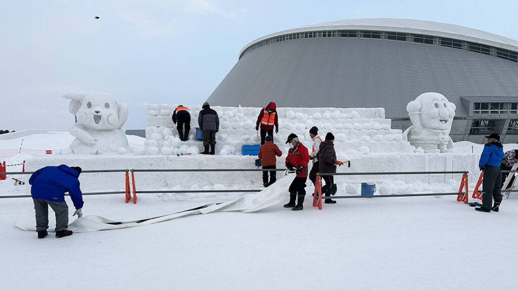 早朝メンテで雪像のクオリティを保つ