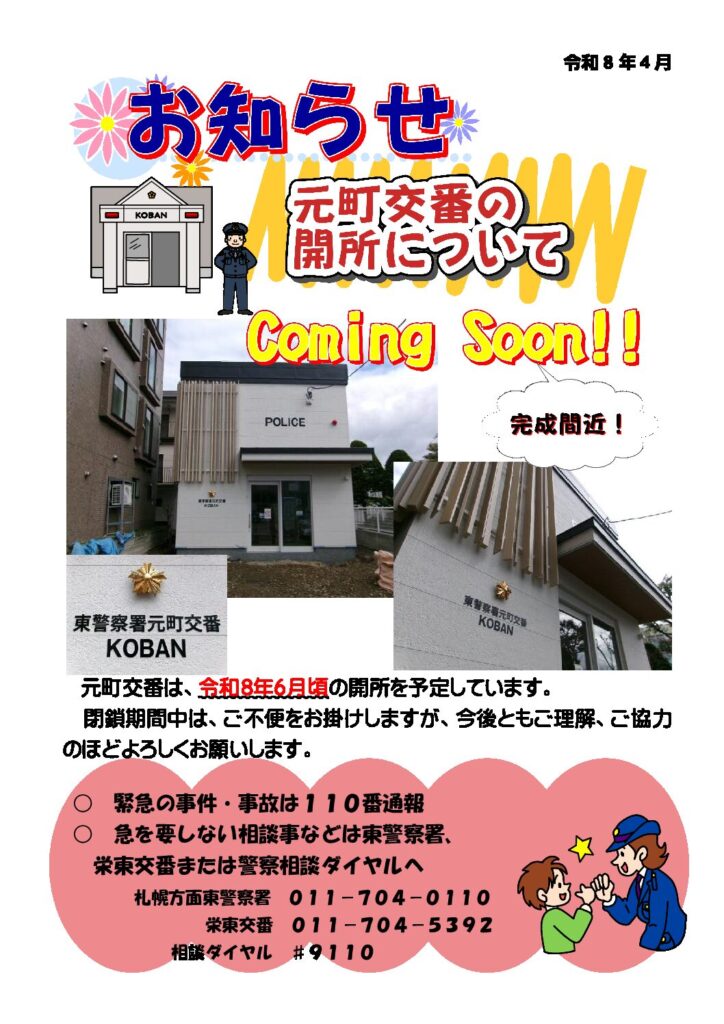 【元町交番より】まもなく開所します
