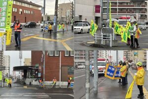 寒空に交通安全への熱い思いを込めて街頭啓発