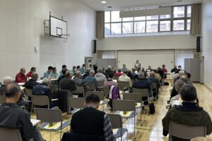 たまねぎは、当日午前中、連合町内会の役員の手で袋詰めし、「東区名産交通安全たまねぎをどうぞ」という交通安全を呼びかけるメッセージカードを添えました。午後2時から開始しましたが、用意した約480袋はあっという間に配布を終えました。参加者は40名で、昨年中止ということもあって一層力を込めて呼びかけや旗振りを行っていました。
