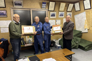 栄東連合町内会では、交通安全運動に重点的に取り組んでおり、季節ごとに各地区で行われる交通安全市民総ぐるみ運動時の該当啓発のほかに、連町独自で毎年秋に「交通安全玉ねぎキャンペーン」を実施しています。 また、さっぽろ雪まつりの開催期間には、「雪まつりウェルカム事業」として、つどーむ会場では栄東地区の住民による雪像の制作、地下鉄栄町駅では観光客への道案内等を行うなど、地域を挙げて来場者のおもてなしを行っています。連合町内会女性部の活動も盛んであり、令和元年度で29年目を迎える「健康ウォーク歩こう運動」をはじめ、35回目となる「早春女性のつどい」は地域住民の交流と親睦の促進に寄与しています。 地区を4つに分けてそれぞれに分区長を配し、連合町内会と単位町内会との連絡・調整を行い、毎年、分区ごとに防災訓練を実施するなど、高い防災意識を持っています。(写真は、栄東地区にあった日の丸農場の記念碑と菊地裕嗣・栄東連合町内会長)